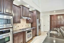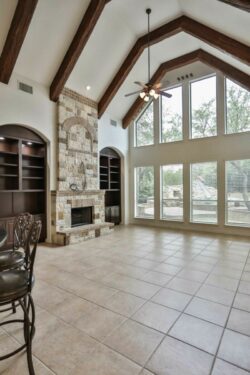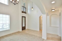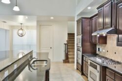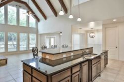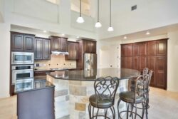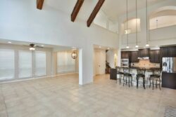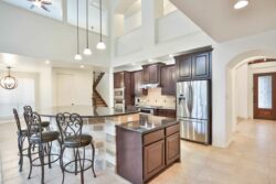 As you step inside this stunning home you’ll notice the open concept with soaring ceilings throughout the downstairs. The living room has tile flooring as well as a beautiful gas fireplace! The kitchen is open to the living with a large island area for bar stools and conversation. In the spacious kitchen you will find gas cooking, stainless appliances, an under-mount sink as well as plenty of cabinets. The breakfast area is oversized and located next to an extra seating/conversation area.