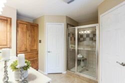 A primary bedroom is located away from the other bedrooms with an updated bathroom and outside access. Enjoy the walk in shower, double vanity and spacious walk in closet.