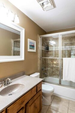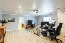 Bedroom 2 has an en-suite bathroom located off the game room/second living space and is perfect for privacy for an in-law and guests. Bed 3 is currently being used as an office.