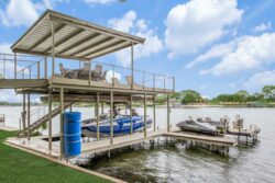 Lakefront living continues as you walk out to your covered boat dock with an entertaining deck, two boat slips, two PWC slips, all on electric remote lifts. Push the buttons, lower your boats and you’re off to enjoy & create your memories at the lake.