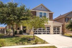 Welcome Home to Cul-de-Sac Living! Discover this stunning property, with UPDATES galore and located on a quiet cul-de-sac, boasting a 3-car garage and no neighbors directly behind for added privacy. The kitchen has been beautifully remodeled with sleek white cabinetry, stainless steel appliances, gas cooking, and elegant quartz countertops. Updated lighting and additional built-in cabinetry in the breakfast area adds a modern touch. A separate dining space is perfect for family meals and entertaining. The primary bedroom is conveniently located on the main level and features an updated bathroom, offering a relaxing retreat. With no carpet and wood laminate flooring throughout, this home is both stylish and easy to maintain. Fresh paint inside adds to the bright and welcoming atmosphere. The living room is a true showstopper with a floor-to-ceiling rock surround fireplace, perfect for cozy evenings. Upstairs you’ll find 3 bedrooms and a large gameroom, perfect as a second living space or place to watch movies. Step outside to a lovely covered patio with extended concrete, providing an ideal space for outdoor gatherings. The backyard also includes an additional storage shed, offering plenty of room for all your extras. Situated near Boerne schools, you can walk to the Cibolo Creek Elementary and Champion High School. The work has been done and ready for immediate move in. Don’t miss the opportunity to make this beautiful home yours!