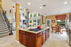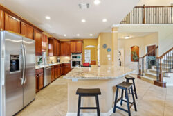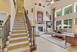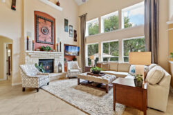 This open concept floor plan has soaring ceilings and something for everyone! There is no lack of space in the spectacular kitchen! Enjoy the large granite island with pop-up electrical, stainless appliances, tons of cabinetry, and prep area. The inviting living room features a beautiful stone fireplace as well as large picture windows allowing for plenty of natural light.