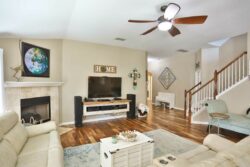 Dreams do come true! 12110 Presidio Pass is a darling home with an inground swimming pool, just in time for the summer! Step inside to a well-maintained and cared for home with wood flooring in most of the downstairs! You will love the open floorplan concept as well as a cozy fireplace. The spacious kitchen has an island that is wonderful for prep, built-in appliances, granite countertops in addition to plenty of cabinetry for storage. Both bedrooms, as well as the study, are downstairs. Upstairs you will find the game room and a full bathroom, making this a 1.5 story home! The master bedroom is split from the other rooms and the master bathroom features a separate tub/shower as well as a double vanity.