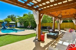 The excitement continues as you step outside to the covered patio with a gorgeous pergola and also an in-ground swimming pool! This backyard is what you’ve been waiting for! Landscaped and ready to go for your fun and enjoyment. There is also a Storage Shed located in the back to help with your storage needs. All of this is as well as more located in a gated neighborhood in Alamo Ranch!