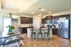 Inside you will find an open and spacious floorplan as well as wood flooring in the living room, entry, and study. Gatherings with friends and family are made easy with the kitchen being open to the living room. The island kitchen has plenty of cabinet space as well as a walk-in pantry, complemented by stainless appliances and pendant lighting.