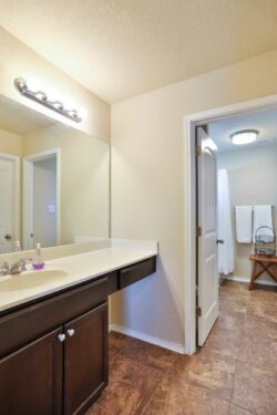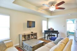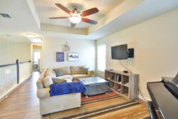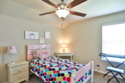 The upstairs layout includes 3 bedrooms and 2 full bathrooms! The jack-n-jill bathroom has a separate sink on each side. The game room/loft area is perfect for kiddos, movie nights, or lots of friends!