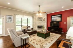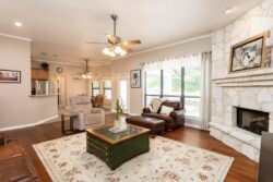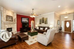 As you step inside you’ll notice the beautiful wood flooring and wood-burning fireplace. This open kitchen concept has granite countertops, plenty of cabinetry as well as stainless appliances. The primary suite is private and separate from the other bedrooms with the ensuite offering a large walk-in shower, soaking tub, and double vanities in addition to his/hers closets!