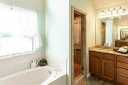 - Tub/Shower Separate, Separate Vanity, Double Vanity, Garden Tub