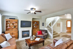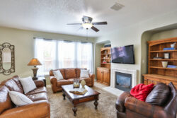 Light, bright and oh so cute! Come on in and start enjoying this darling home. 237 Horse Hill features a tiled entryway that leads to an open living concept with a fireplace in the living room. Enjoy plenty of party space while cooking & entertaining in a spacious kitchen! This kitchen has an island, 42″ cabinetry, black appliances, as well as tons of storage and counter space. Private master bedroom and bathroom with double vanities, separate garden tub and shower. Three additional bedrooms upstairs. Outdoor entertaining with a covered patio and mature trees!
