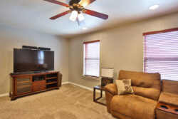 Welcome to this darling and conveniently located home! Situated on a large corner lot, 245 Mustang Run has 4 bedrooms and 2 and a half baths. Enjoy the spacious living area complete with a fireplace! The island kitchen has beautiful granite countertops, stainless steel appliances, 42″ cabinets, tile back splash, topped off with a large walk in pantry! The Master features a bathroom with double vanities and plenty of closet space. The kids can have their own play space with the the bonus loft/game room! Outside you will find a giant covered patio and pergola with a storage shed.