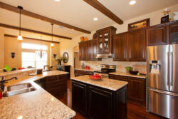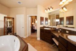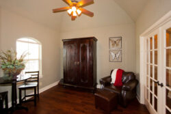 Show stopper! This meticulously maintained has all the bells and whistles. 247 Leather Leaf features an entertainers island kitchen with granite counters, stainless appliances, under mount sink, knotty alder cabinetry, wood beams & pendant lighting. This split designed home has a master retreat with outside access. Master bath has a double entry walk in shower, double vanities with seating area & large soaking tub. Jack n jill bath with 2 sinks! Two sets of Double doors at study. Wood floor, rope lighting & fireplace add to the WOW factor!