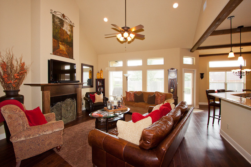 Show stopper! This meticulously maintained has all the bells and whistles. 247 Leather Leaf features an entertainers island kitchen with granite counters, stainless appliances, under mount sink, knotty alder cabinetry, wood beams & pendant lighting. This split designed home has a master retreat with outside access. Master bath has a double entry walk in shower, double vanities with seating area & large soaking tub. Jack n jill bath with 2 sinks! Two sets of Double doors at study. Wood floor, rope lighting & fireplace add to the WOW factor!