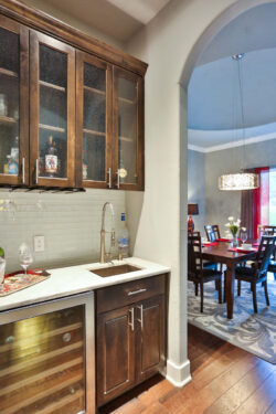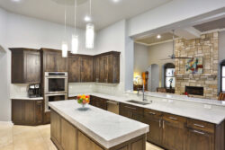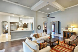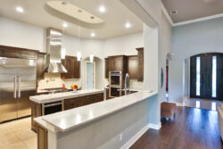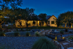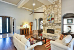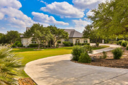 309 Ranch Pass in an elegantly designed transitional style custom home situated on a perfectly landscaped and tree-studded lot. Beautiful iron doors welcome you inside to an open floor plan. Carrera counters, Thermador commercial grade appliances, double ovens as well as a pot filler and built-in refrigerator can be found in the stunning kitchen. Enjoy the wine bar next to the dining room! The private master bedroom features an extremely spacious master bathroom. The jetted tub, large walk-in shower with rain head, and his/her closets are all incredible! Split between bedrooms 2 and 3 you will find the game room/second living area. All four bedrooms have their own bathrooms! You will find wood and travertine flooring throughout the home and don’t miss the amazing mudroom!