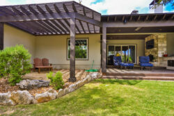 Ready for outdoor living? 309 Ranch Pass has a gorgeous covered patio with a gas starter fireplace as well as a gas grill. The cooling misters and ceiling heater means you can enjoy your patio year-round! In the perfectly designed backyard you will find cute seating areas as well as bird feeders.