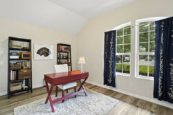 Open to the living room is the kitchen with a large breakfast area, stainless appliances, as well as a double oven! The large island and abundance of cabinets make storage and cooking prep a breeze! The separate dining space is perfect for large gatherings. Work or do school from home in the separate office space! The master bedroom is split from the other bedrooms and has plenty of closet space, as well as double vanities and a separate tub/shower in the bathroom. Wood-look tile was added to most of the home and the carpet has been recently replaced!