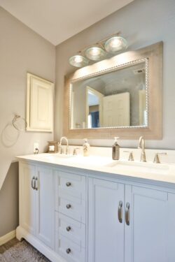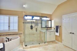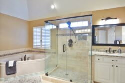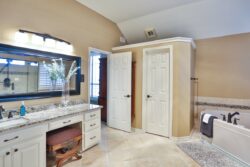 - Tub/Shower Separate, Separate Vanity, Tub has Whirlpool