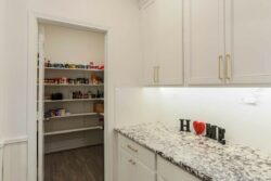 The living room is open to the kitchen for great conversation space. This kitchen is one you dream about! Bright and darling with tons of cabinet and counter space, a coffee bar, huge pantry, designer colors, stunning granite, 42″cabinetry, built in stainless appliances as well as a breakfast bar for bar stools! Such a perfect set up!