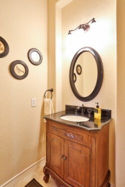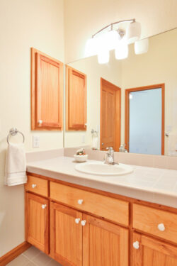 - Tub/Shower Separate, Separate Vanity, Tub has Whirlpool