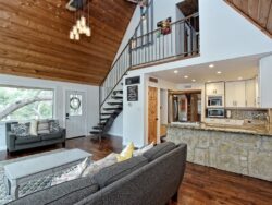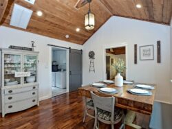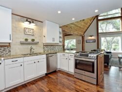 9823 Menchaca Road is an adorable, remodeled, A-Frame home that will make you say WOW! This spacious, open concept home has tons of DETAIL! The living room has massive windows that look out into the beautiful front yard. In the kitchen you will find granite counter tops, gorgeous cabinets that reach the ceiling, and gas cooking . The large and private master suite has amazing wood floors that you can also find throughout the rest of the house. In the master bath there is a stunning walk in shower and large vanity. Don’t forget about the spacious laundry room. Outside, you will find perfectly designed spaces, including a kitchen with a pergola, a roomy garden, HUGE TREES! The Workshop is a bonus! 9823 Menchaca Road is fenced with an Iron Gate.